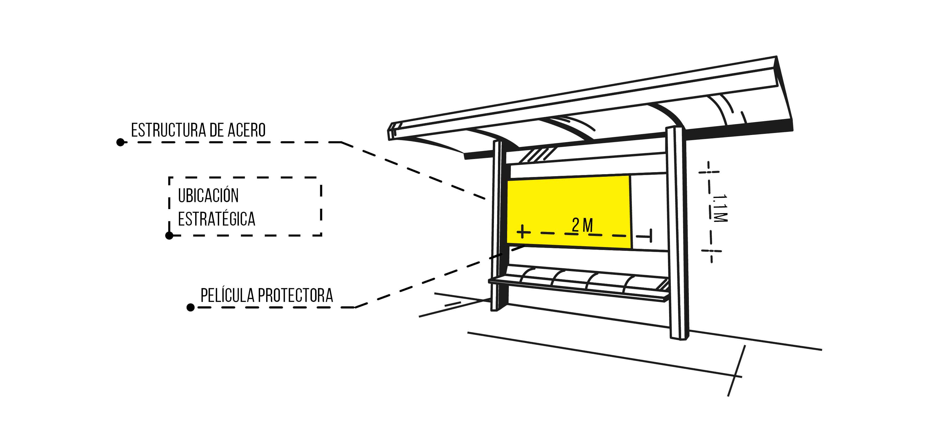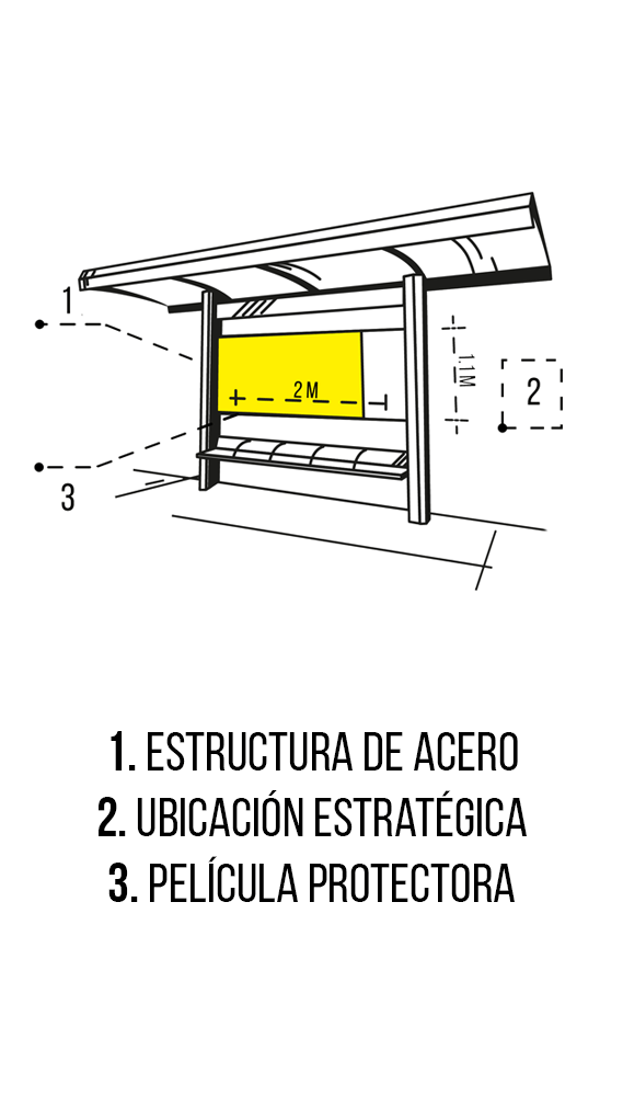 son el mobiliario urbano que proporciona a los usuarios del transporte público información y asientos de descanso, siendo por ello una excelente opción para promocionar tu marca o negocio, esto debido a la gran cantidad de personas que se reúnen ahí todos los días.